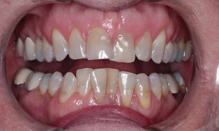Betty had been self-conscious about her smile for decades. Crowded, crooked teeth made daily hygiene difficult and had contributed to periodontal disease. To make matters worse, her deep bite was wearing down her front teeth and compromising both function and esthetics. She finally decided it was time for a change—but only if it could be done in a way that protected her long-term health.